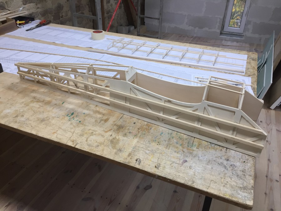 Nachdem ich einige vorbereitende Arbeiten ausgeführt habe (Rumpfseiten und Spanten aus mehreren Schichten verleimt