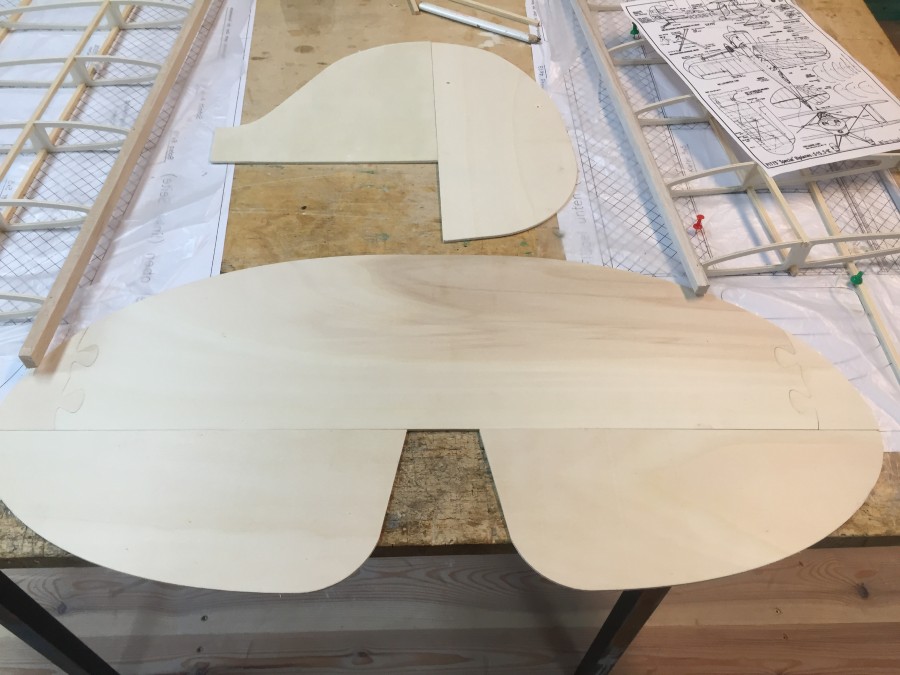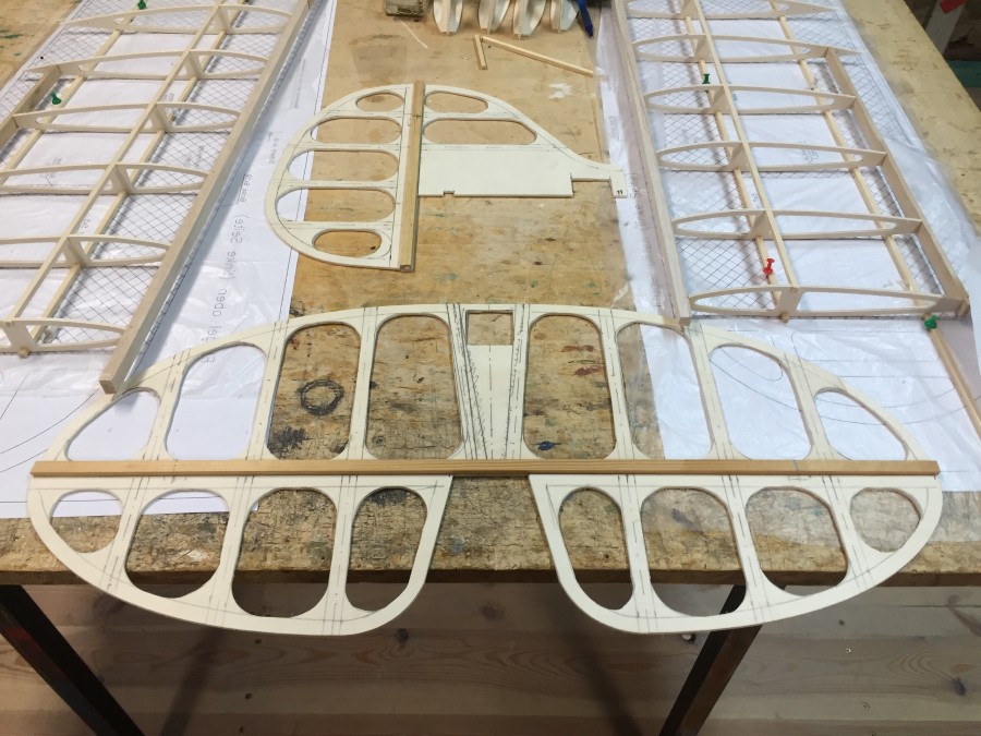 Hier trocknen die beiden Tragflächengerippe. Die untere Fläche wird erst nach dem Beplanken der Unterseite zu einem