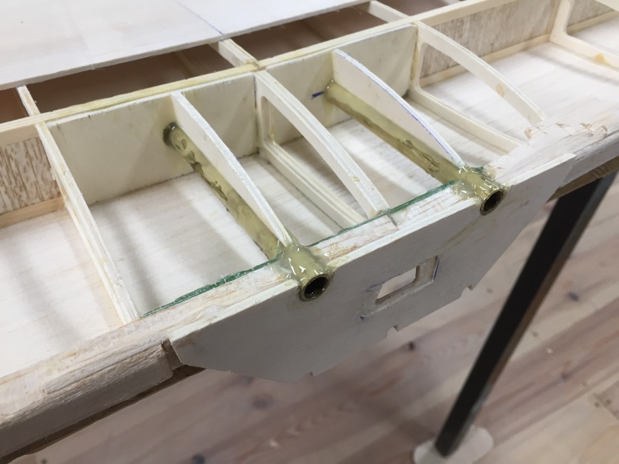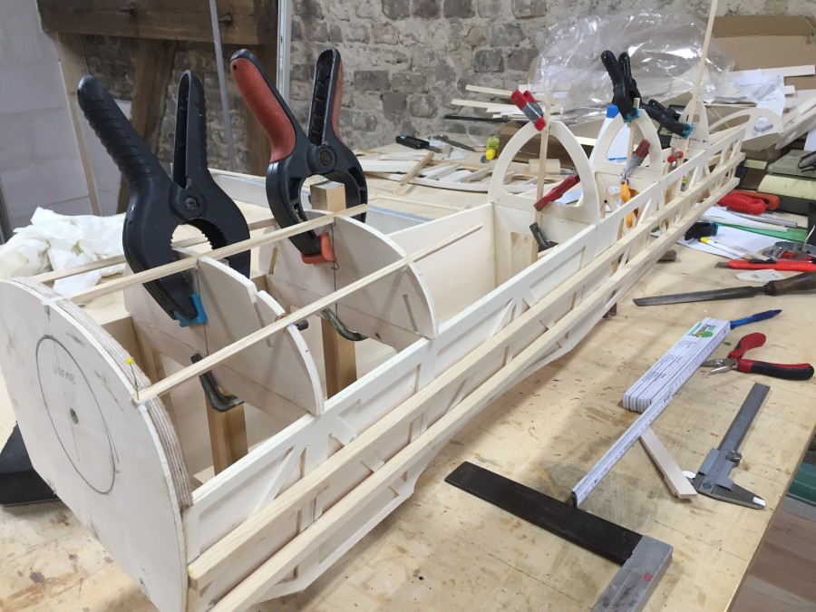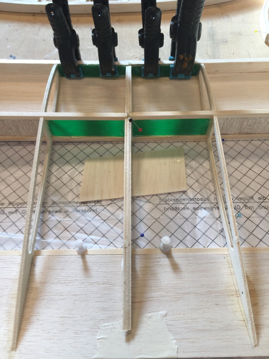 Bausession habe ich die oberen Rumpfhalbspanten verklebt. Um das Ganze stabiler zu gestalten, habe ich im vorderen