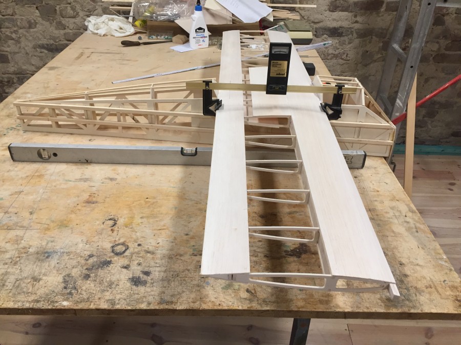 der Zeit die Servokabel in die Fläche einzuziehen. Danach wird die Oberseite beplankt. Zum Abschluss der heutigen