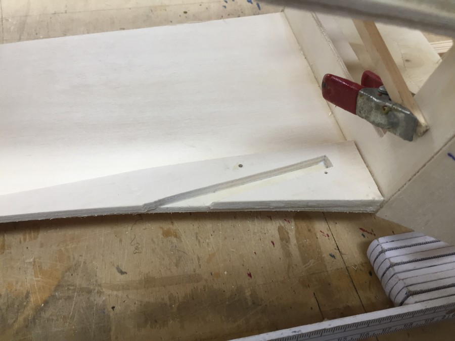 Fläche ebenfalls 0° zur Horizontalen und ausgewinkelt zum Rumpf und zum Bautisch