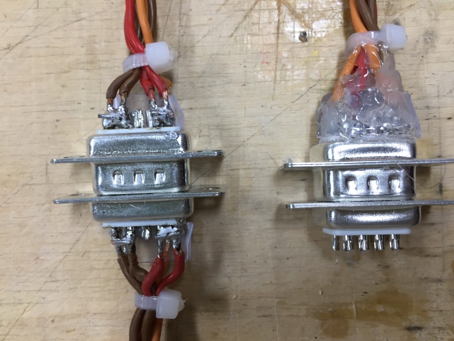 Die Servokabel zu und von den D-Sub Steckern sind verlötet und eingebaut. Hierzu ist zu sagen, dass pro Leitung je zwei