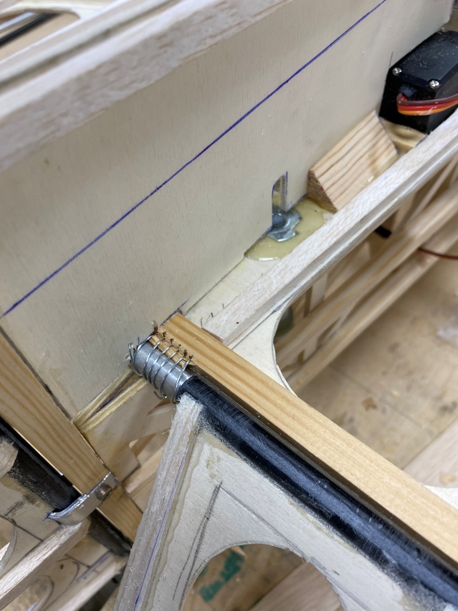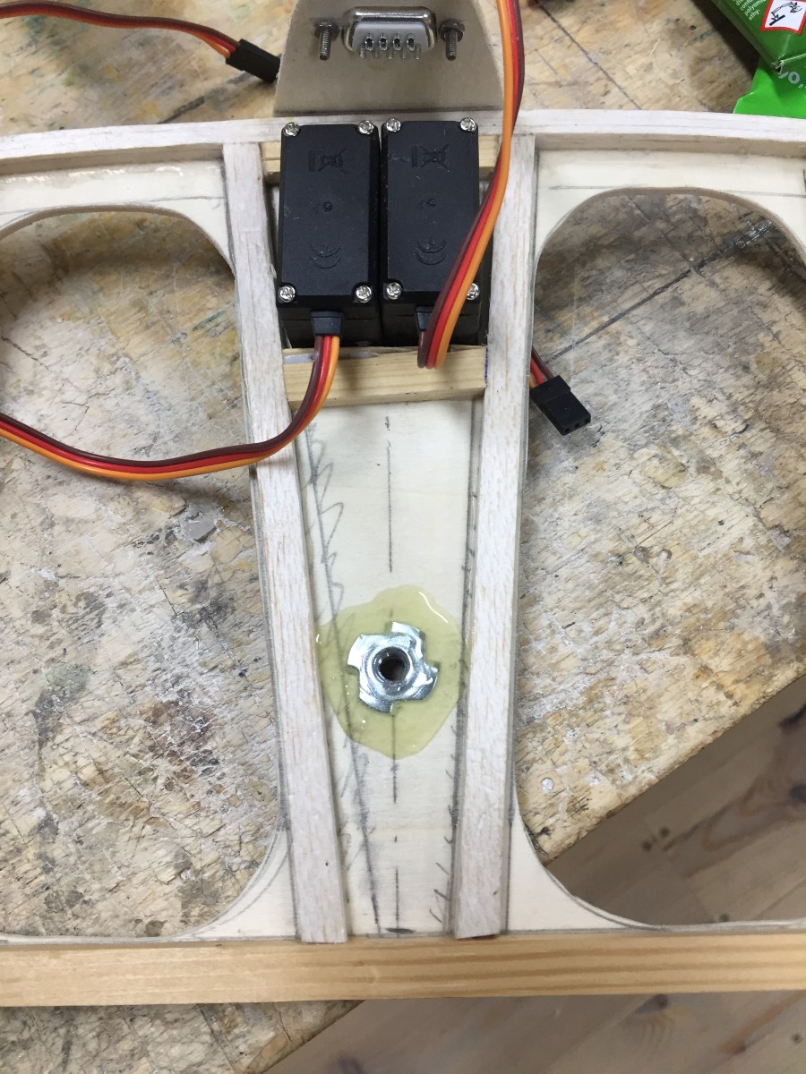 wird eine passende Einschlagmutter auf der Oberseite des Höhenleitwerks eingeklebt.