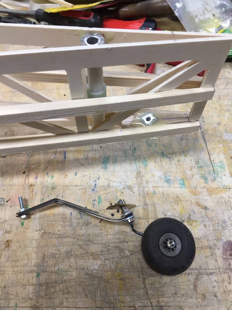 Zwischendurch habe ich das Spornfahrwerk aus vorhandenen Komponenten gefertigt! Drei Lagen Blattfeder aus einer